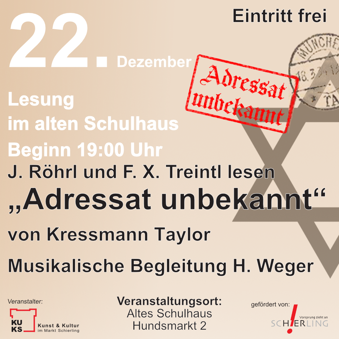 Fotos Ausstellung „Mein Name ist Mensch – 75 Jahre Allgemeine Erklärung der Menschenrechte“ WhatsApp-Bild-2024-04-28-um-10.55.13_66eaf0fc Bild 1 von 6 Offene Bühne Langquaid zu Gast in Inkofen am 25.04.2024 20240425_193120 Bild 1 von 10 Lesung „Adressat unbekannt“ am 22.12.2023 Bild 6 von 6